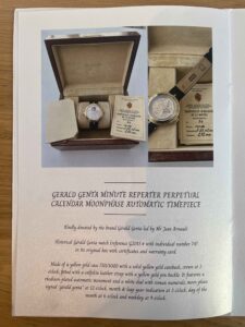 4)ジェラルド・ジェンタのムーンフェイズカレンダー付きオートマチック腕時計。裏がスケルトンになった世界限定1000本のパーペチュアルな時計は男性なら誰でも憧れそうです。