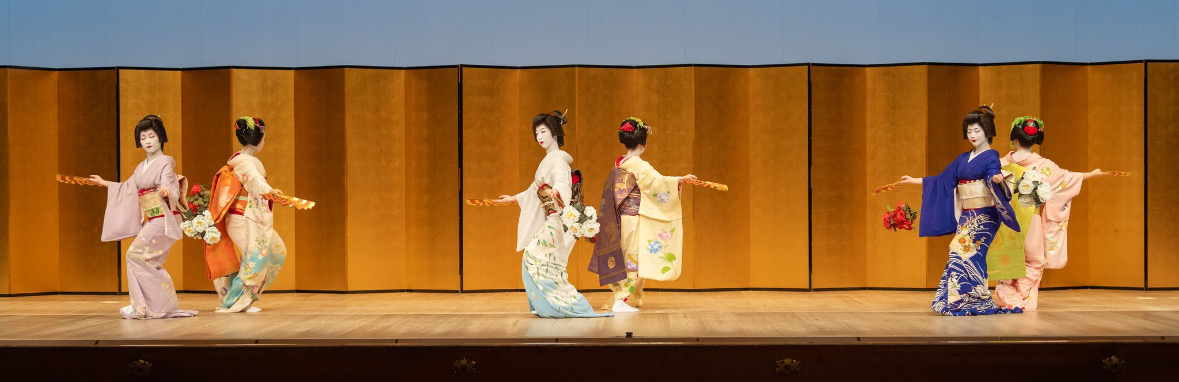 花街ごとに各行事があり、都をどり、祇園をどり、京おどり、鴨川をどり、北野をどりを行っています。またそれぞれ日本舞踊の流派が決まっていて、仕込み時代から各流派のお師匠さんから手ほどきを受けて厳しい稽古を重ねるそうですよ。